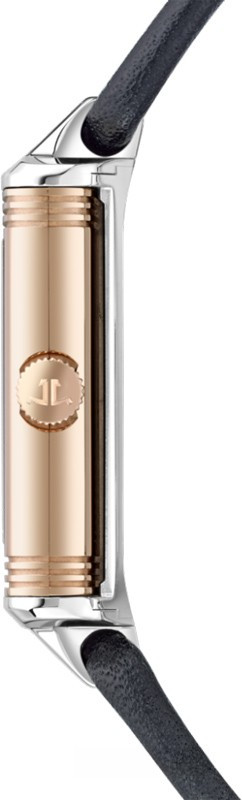 Часы представлены в корпусе из нержавеющей стали и розового золота 18к размером 33.8 х 16.3 х 7 мм и водонепроницеамостью 30 метров. Внутри корпуса установлен кварцевый механизм. На белом циферблате отображаются часы и минуты. Часы комплектуются черным кожаным ремешком с вставкой из нержавеющей стали.