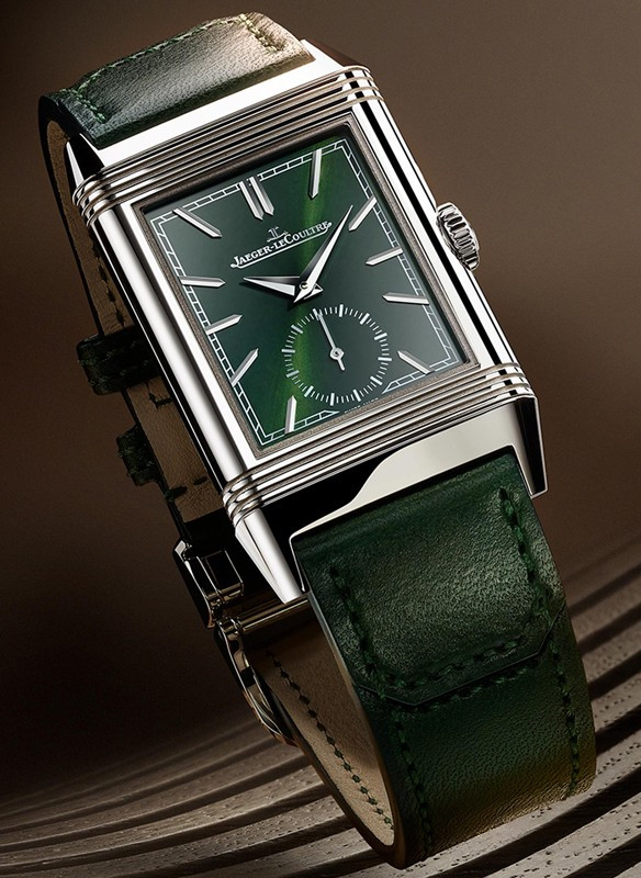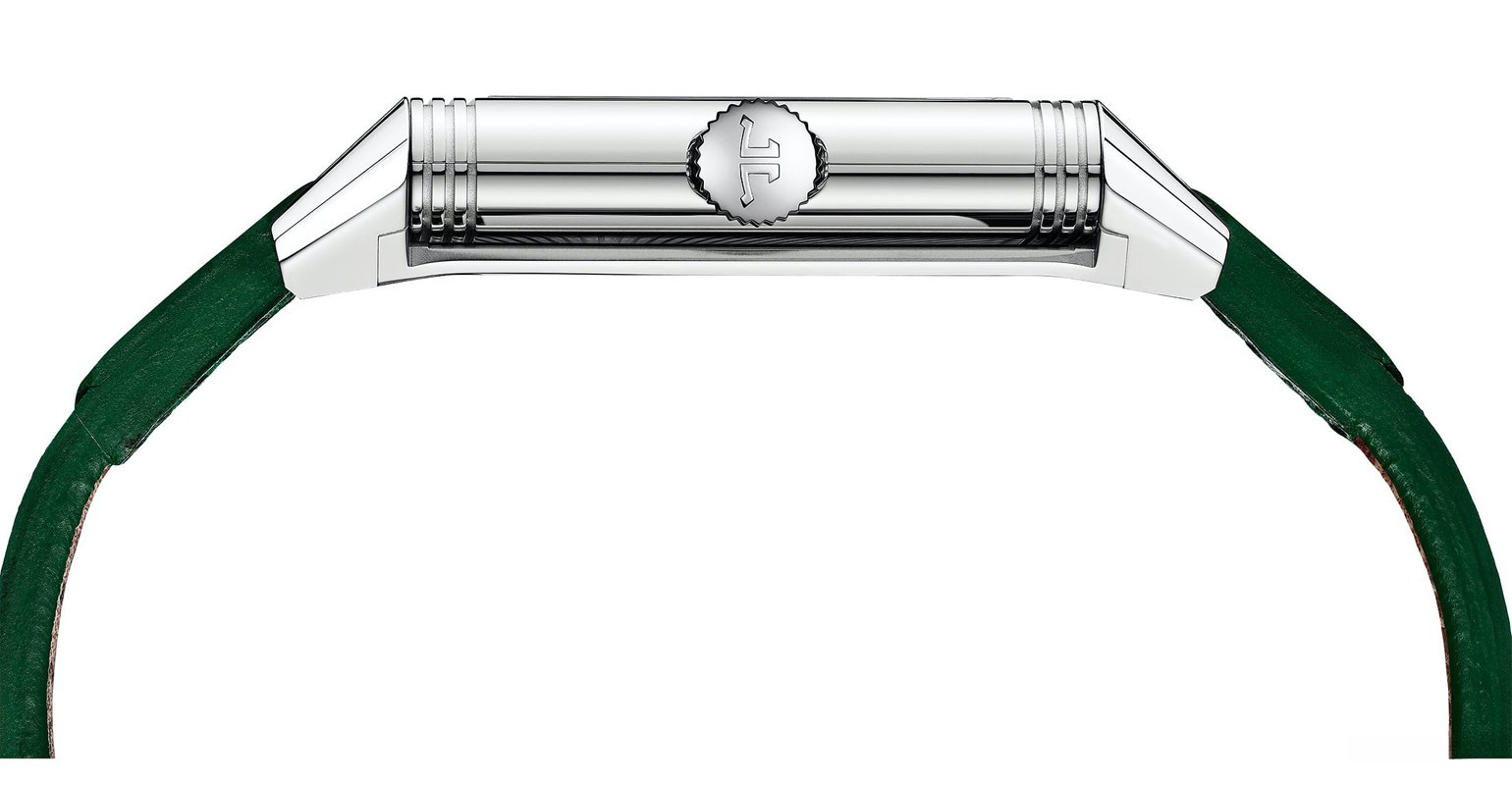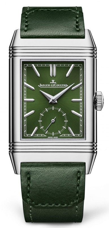 Часы Jaeger-LeCoultre Reverso Tribute Small Seconds представлены в корпусе из нержавеющей стали размером 45.6 х 27.4 х 8.5 мм, обладают водонепроницаемостью до 30 метров. Внутри корпуса установлен механизм с ручным заводом Калибр 822/2 с запасом хода 42 часа. На зеленом циферблате отображаются часы, минуты, секунды. Часы поставляются на кожаном ремешке с вставкой из нержавеющей стали.