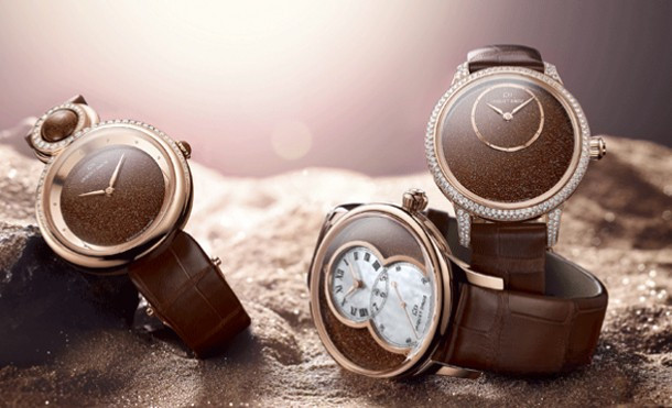 Часы Lady 8 Sunstone представлены в корпусе из розового золота 18к диаметром 35 мм и водонепроницаемостью до 30 метров. Автоматический механизм поддерживает функционал часов и минут, которые отображаются на золотистом авантюриновом циферблате при помощи мечевидных стрелок. Часы комплектуются коричневым ремешком из кожи аллигатора с вставкой из розового золота 18к. На циферблате золотые крупинки мерцают и излучают свечение завораживающей интенсивности, напоминая нам о мощности светового потока звезды, которую в древности мудрецы считали одновременно небесным телом и божеством. Sunstone является последним дополнением, выдержанным в рамках давней почитаемой брендом традиции разработки циферблата из минералов яшмы, лазурита или метеорита. Серия выпущена в количестве 88 экземпляров.