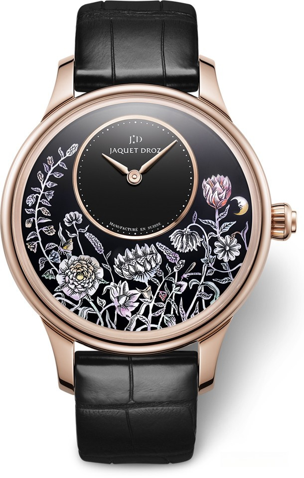 Часы Petite Heure Minute Thousand Year Lights воспевают традиционное мастерство Jaquet Droz, которое насчитывает вот уже почти 300 лет. Они представляют собой подлинный шедевр декоративного искусства, посвященный красоте цветов и женщин, для которых они предназначены.Мастера Jaquet Droz, создавшие Petite Heure Minute со смещенным к отметке «12 часов» циферблатом, воскресили стиль Пьера Жаке-Дро, отразивший духовное богатство эпохи Просвещения. Для оформления циферблата этой изумительной версии Petite Heure Minute мастера часового Дома Jaquet Droz выбрали традиционное искусство Азии. Переливающийся цветочный узор вдохновлен техникой «наджон чхильги», которая представляет собой инкрустацию перламутром с лакировкой. Часы Petite Heure Minute Thousand Year Lights диаметром 39 мм привлекают внимание эффектным циферблатом, на котором изображен букет полевых цветов. Часы выпущены в корпусе из розового золота 18к в количестве 28 штук.