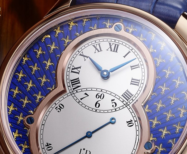 Золото и замысловато изящный рисунок, виртуозное исполнение – такова зародившаяся в XVIII веке техника paillonné, которой мастера бренда владеют в совершенстве. С поразительной скрупулезностью они создают циферблаты в технике горячей эмали, многократно обжигая их при температуре, иногда достигающей 1000 градусов. Только настоящий профессионал может по виду определить, когда цвет станет абсолютно однородным и когда узор из частиц золота, нанесенный на поверхность с невероятной точностью, застынет под прозрачными слоями эмали. Стрелки из вороненой стали. Циферблат синего цвета выполнен в технике горячей эмали, украшен в технике «paillonné». Cчетчик серебристого цвета с матовой опаловой эмалью. Корпус и накладное кольцо из розового золота 750 пробы. Механизм с автоматическим подзаводом. Запас хода 68 часов. Диаметр 43 мм. Ограниченная серия из 8 экземпляров.