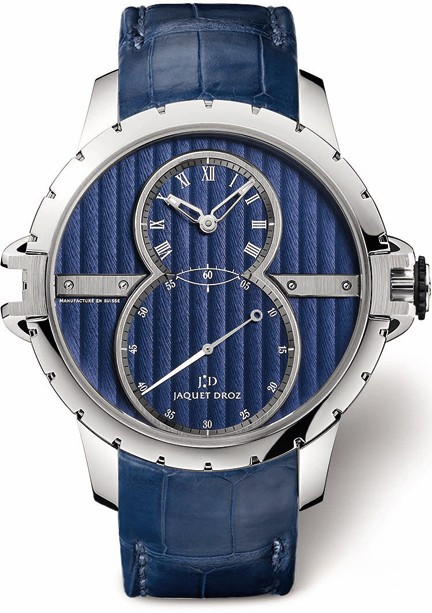 Новая модель Grande Seconde SW Steel предстает в еще более роскошном исполнении благодаря современной цветовой гамме, а также ремешку из кожи аллигатора и новому узору «женевские волны». Этот вид декоративной отделки, характерный для швейцарского часового искусства, украшает циферблат новой модели. Геометрически выверенная последовательность линий узора делает оформление часов необыкновенно ярким и придает им дополнительный рельеф. Кроме того, традиционный каучуковый ремешок и металлический браслет заменены ремешком из благородной блестящей кожи аллигатора в тон циферблату. В этой модели тщательно продуманные нововведения бесспорно элегантных и неизменно роскошных часов сочетаются с постоянством духа Jaquet Droz.