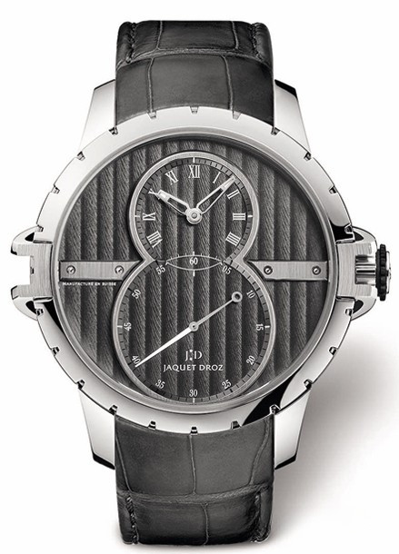 Новая модель Grande Seconde SW Steel предстает в еще более роскошном исполнении благодаря современной цветовой гамме, а также ремешку из кожи аллигатора и новому узору «женевские волны». Этот вид декоративной отделки, характерный для швейцарского часового искусства, украшает циферблат новой модели. Геометрически выверенная последовательность линий узора делает оформление часов необыкновенно ярким и придает им дополнительный рельеф. Кроме того, традиционный каучуковый ремешок и металлический браслет заменены ремешком из благородной блестящей кожи аллигатора в тон циферблату. В этой модели тщательно продуманные нововведения бесспорно элегантных и неизменно роскошных часов сочетаются с постоянством духа Jaquet Droz.