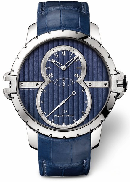 Новая модель Grande Seconde SW Steel предстает в еще более роскошном исполнении благодаря современной цветовой гамме, а также ремешку из кожи аллигатора и новому узору «женевские волны». Этот вид декоративной отделки, характерный для швейцарского часового искусства, украшает циферблат новой модели. Геометрически выверенная последовательность линий узора делает оформление часов необыкновенно ярким и придает им дополнительный рельеф. Кроме того, традиционный каучуковый ремешок и металлический браслет заменены ремешком из благородной блестящей кожи аллигатора в тон циферблату. В этой модели тщательно продуманные нововведения бесспорно элегантных и неизменно роскошных часов сочетаются с постоянством духа Jaquet Droz.