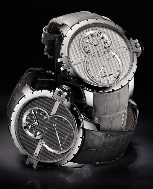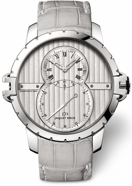 Новая модель Grande Seconde SW Steel предстает в еще более роскошном исполнении благодаря современной цветовой гамме, а также ремешку из кожи аллигатора и новому узору «женевские волны». Этот вид декоративной отделки, характерный для швейцарского часового искусства, украшает циферблат новой модели. Геометрически выверенная последовательность линий узора делает оформление часов необыкновенно ярким и придает им дополнительный рельеф. Кроме того, традиционный каучуковый ремешок и металлический браслет заменены ремешком из благородной блестящей кожи аллигатора в тон циферблату. В этой модели тщательно продуманные нововведения бесспорно элегантных и неизменно роскошных часов сочетаются с постоянством духа Jaquet Droz.