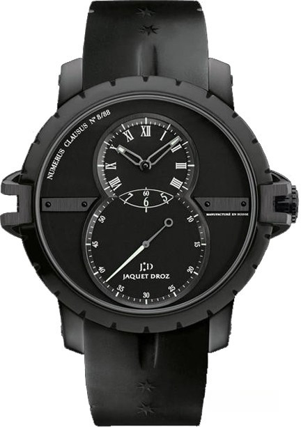 Часы Jaquet Droz Urban London Grande Seconde SW J029038410 обладают круглым корпусом из нержавеющей стали, с покрытием PVD, диаметром 45 мм, водонепроницаемостью до 50 м. Рифленая заводная головка расположена на отметке 3 часа. Сапфировое стекло установлено на передней стороне часового корпуса (с антибликовым покрытием) и на его завинчивающейся задней крышке. Циферблат черного цвета со скелетированными стрелками. Модель оснащена мануфактурным швейцарским автоматическим механизмом. Калибр с функциями индикации часов, минут, секунд. Калибр отменно отделан и декорирован. Поставляется на ремешке из каучука с вставкой из нержавеющей стали. Модель выпускается ограниченной серией в количестве 88 экземпляров.
