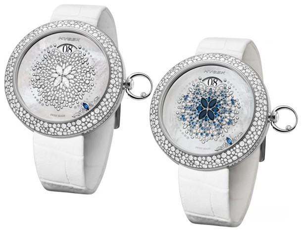 Часы Hysek Kalysta Snowflake представлены в корпусе из титана размером 39 х 11 мм и водонепроницаемостью 30 метров. Внутри корпуса установлен автоматический механизм с запасом хода 39 часов. На белом жемчужном циферблате с белыми бриллиантами и синими сапфирами отображаются часы, минуты. Часы поставляются на сатиновом ремешке с титановой вставкой. Безель из белых бриллиантов, серия ограничена (32 шт.)