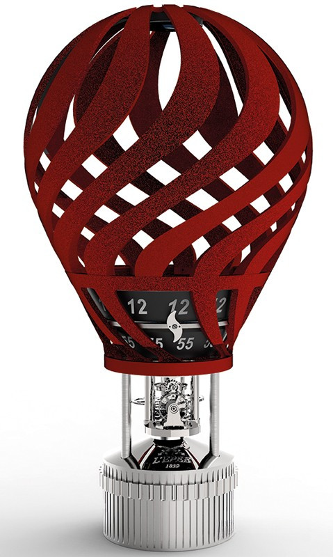 L’Epee 1839 Hot Balloon - механические часы в форме воздушного шара, изготовленные на мануфактуре L’Epée 1839 совместно с талантливым дизайнером Марго Клавье. Механический запас хода 8 дней, 17 камней. Размеры: высота 31 см, диаметр шара 17,2 см, высота корзины 8 см. Вес: 3,9 кг, 217 деталей. Лимитированный выпуск 50 штук в каждом цвете (синий, красный, черный, серебристый). Производство Швейцария.
