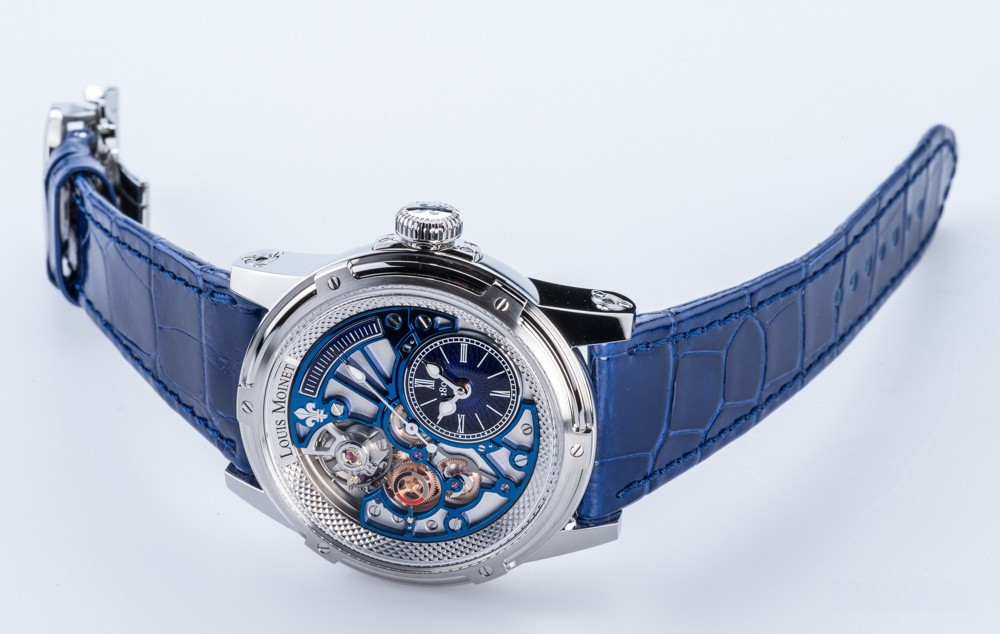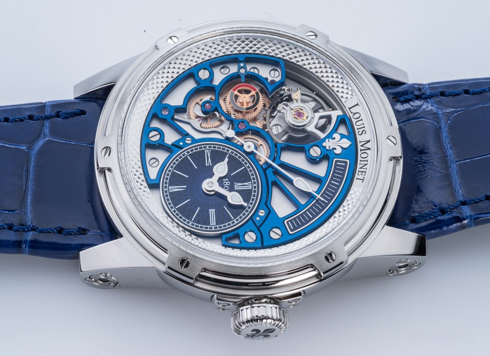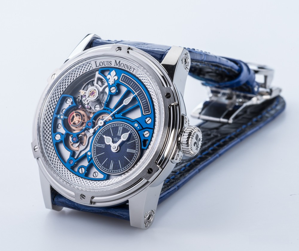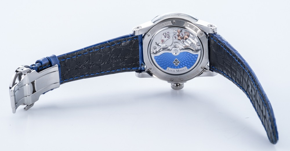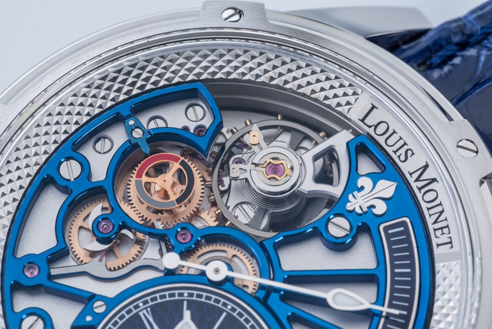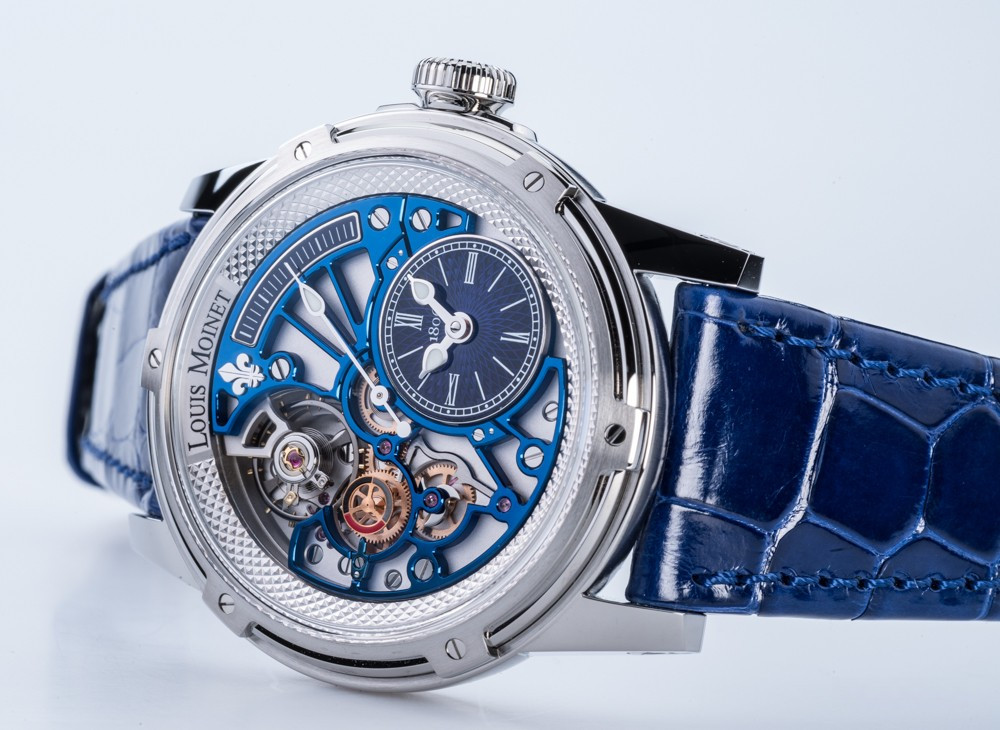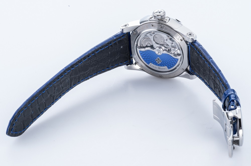 Циферблат 20-Second Tempograph Chrome с часовой и минутной стрелками находится в положении «4 часа»; он также украшен концентрическим рисунком Clou de Paris, ключевым декором для Louis Moinet. Часы также имеют новый корпус, заимствованный из коллекции Memoris, первых хронографов в истории. Насчитывающий 52 компонента, корпус был уменьшен в размере с 46 до 44 миллиметров, а затем полностью переработан, чтобы вместить в себя ретроградный механизм 20-Seconds Tempograph. Это также первый случай, когда престижный корпус выполнен из нержавеющей стали для синей версии.