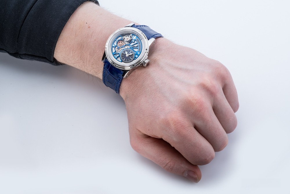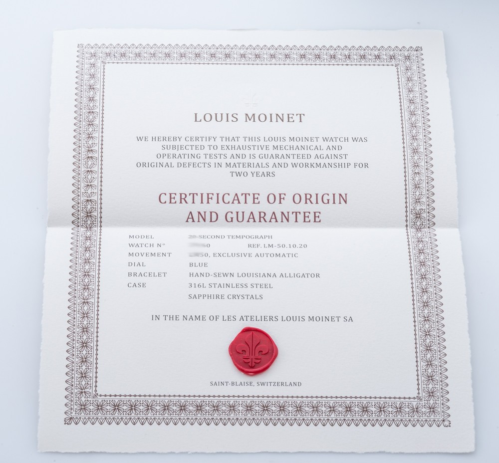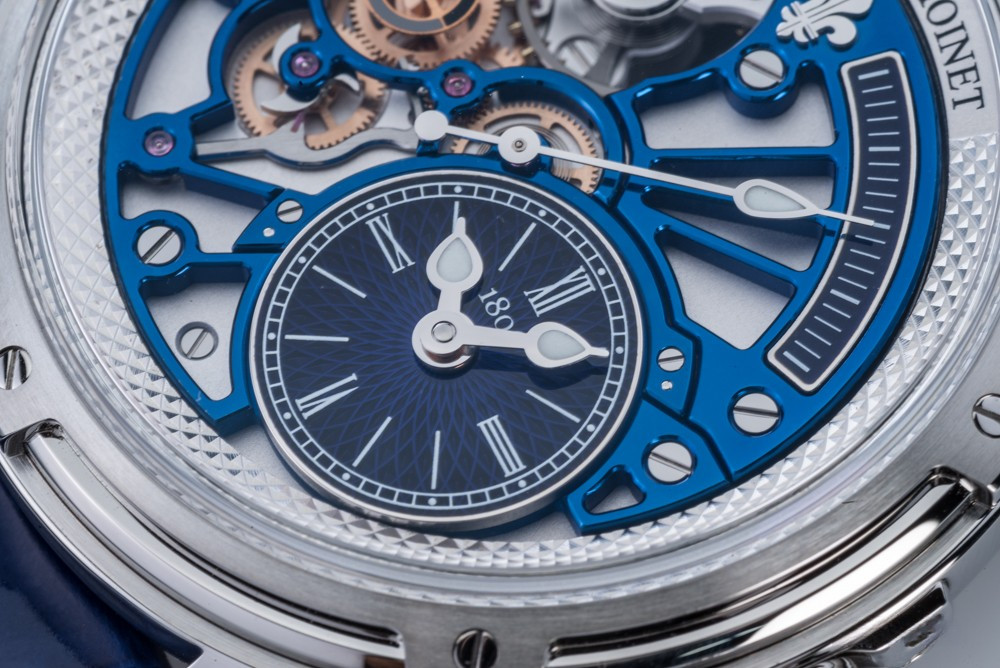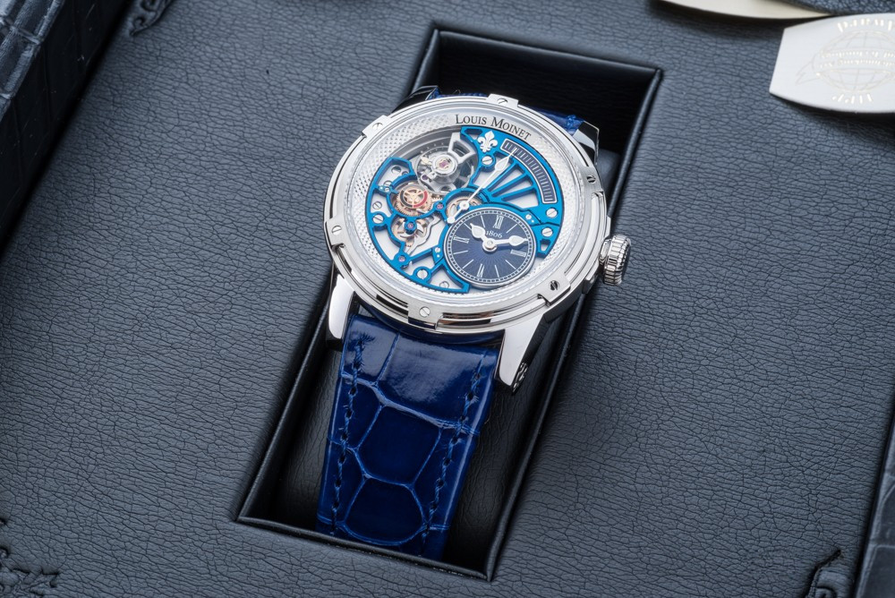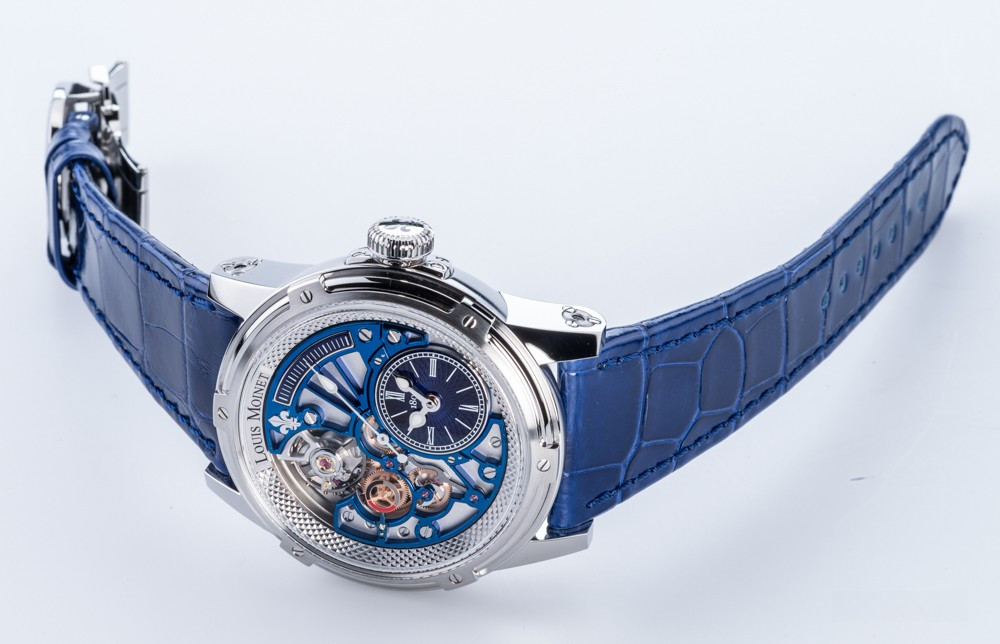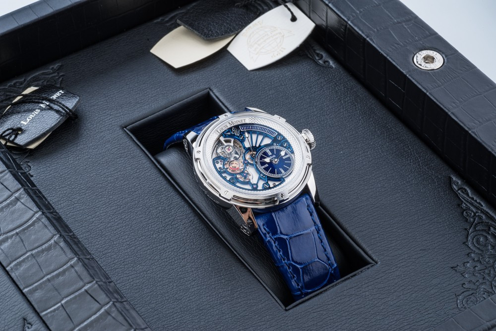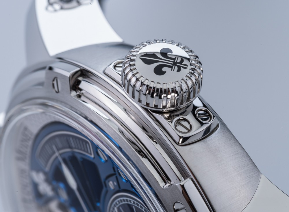 Циферблат 20-Second Tempograph Chrome с часовой и минутной стрелками находится в положении «4 часа»; он также украшен концентрическим рисунком Clou de Paris, ключевым декором для Louis Moinet. Часы также имеют новый корпус, заимствованный из коллекции Memoris, первых хронографов в истории. Насчитывающий 52 компонента, корпус был уменьшен в размере с 46 до 44 миллиметров, а затем полностью переработан, чтобы вместить в себя ретроградный механизм 20-Seconds Tempograph. Это также первый случай, когда престижный корпус выполнен из нержавеющей стали для синей версии.