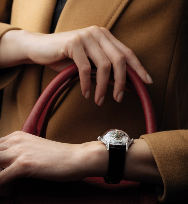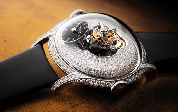 водонепроницаемость 30 м, корпус инкрустирован белыми бриллиантами