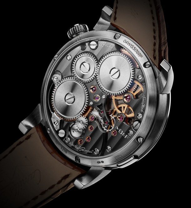 «Split Escapement» – «Раздельный спуск». Располагаясь чуть ниже самой высокой точки выпуклого стекла, баланс совершает колебания с привычной частотой 2,5 Гц (18 000 полуколебаний в час). Однако его конструкция далека от привычной. В отличие от большинства других подвешенных балансов, которые можно встретить в коллекции Legacy Machine, и тем более в отличие от балансов, применяемых в часах любой другой марки, баланс LM Split Escapement выглядит так, словно он колеблется сам по себе, без какого бы то ни было источника энергии. Важнейшие части спуска, дробящие энергию заводной пружины на импульсы – анкерное колесо и анкерная вилка, – вынесены на противоположную сторону часового механизма и расположены почти на 12 мм ниже. Отсюда и название. Под балансом размещены три круглых указателя: время показывает циферблат в положении «12 часов», запас хода – индикатор в положении «4 часа», дату – указатель в положении «8 часов». Индикация даты быстро и удобно настраивается кнопкой на торце корпуса рядом с указателем. Рутениевая «морозная» отделка в тон оформлению часового механизма, ассоциирующаяся с функциональностью нового тысячелетия, привлекает внимание к белым лакированным циферблатам. Серия насчитывает 18 экземпляров. Часы поставляются на ремешке из кожи аллигатора.