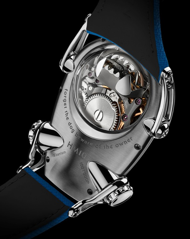 Часы Horological Machine N°10 Bulldog имеют компактный округлый корпус из титана в сочетании со сферическим сапфировым стеклом. Два выразительных «глаза» в виде алюминиевых индикаторов времени. Рельефная заводная коронка, напоминающая ошейник с шипами, служит для завода часов и установки времени. Гибкие и при этом прочные «лапы» надежно фиксируют часы на запястье. Механизм с ручным заводом обладает балансовой частотой 2,5 Гц (18 000 пк/ч) и запасом хода 45 часов. На черном циферблате отображаются часы и минуты. Размер корпуса составляет 45 х 54 х 24 мм. Водонепроницаемость 50 метров. На корпусе модели Horological Machine N°10 Bulldog выгравирован совет, схожий с предостережением на ошейниках грозных собак. Ведь собака может вызывать опасение, однако она служит человеку. Поэтому не стоит забывать следующее: «Забудьте про собаку – остерегайтесь ее владельца». Часы поставляются на кожаном ремешке с титановой вставкой.