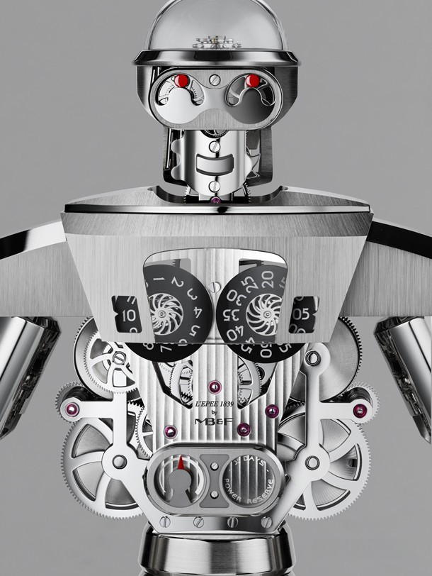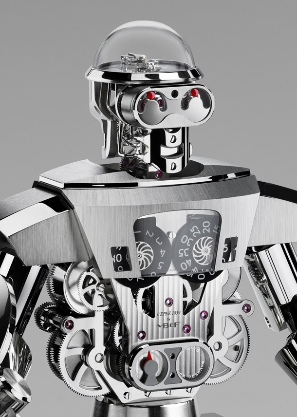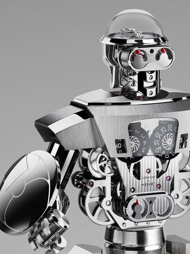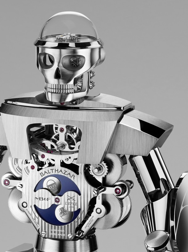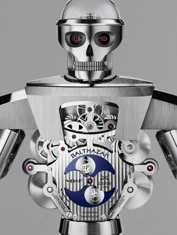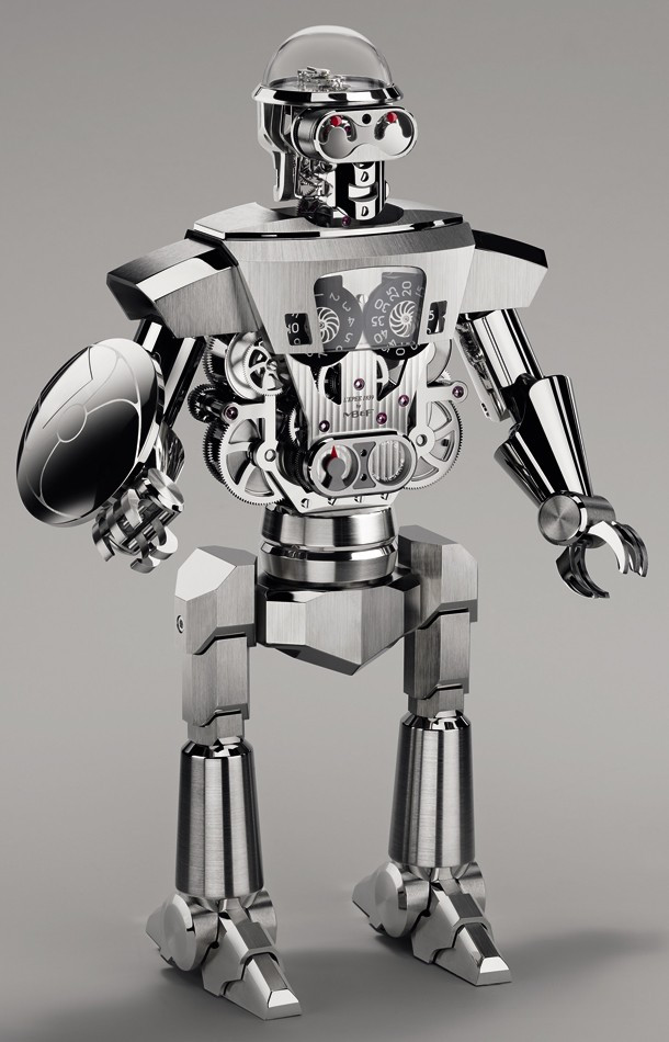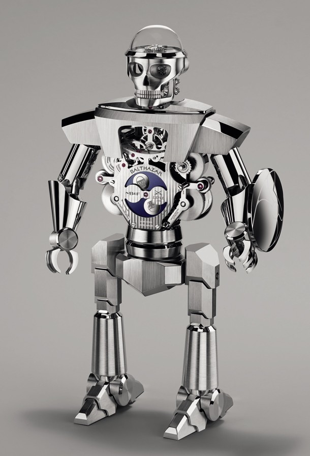 Бальтазар – так называются эти импозантные высокотехнологичные часы-робот с «прыгающей» индикацией часа, ретроградной индикацией секунд и 35-дневным запасом хода. Бальтазар, насчитывающий 618 деталей, выполненных с микроскопической точностью, весит более восьми килограммов, а его высота составляет около 40 см.