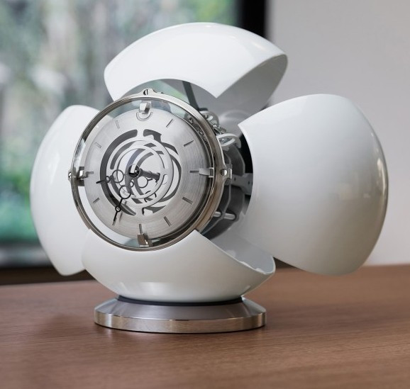 Настольные часы MB&F Performance Art L’Epee 1839 Orb представлены в корпусе из нержавеющей стали, палладия, керамики размером 170 х 170 мм (в закрытом виде)/ 240 х 300 мм (в открытом виде). Внутри корпуса находится механизм с ручным заводом, обладающий запасом хода 8 дней. На белом циферблате отображаются часы, минуты. Серия ограничена - 50 шт.