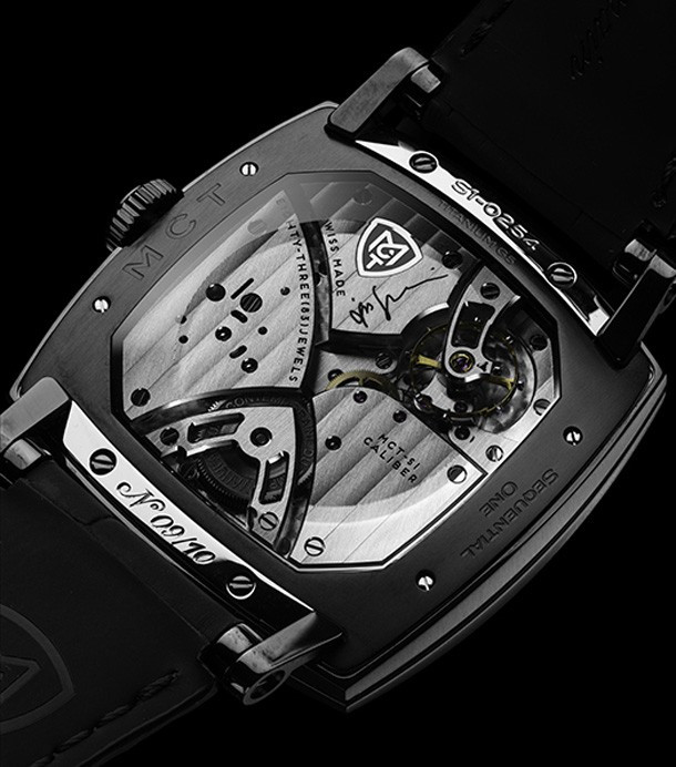 Часы Sequential One S110 Evo Vantablack представлены в титановом корпусе с покрытием DLC, размер составляет 45 х 45 х 15.5 мм. Циферблат часов покрыт сапфировым стеклом, водонепроницаемость 30 м. Циферблат черный Vantablack из высокотехнологичного материала, состоящего из карбоновых нанотрубок, диаметром миллионная доля миллиметра каждая, способных поглощать 99,965% света, который они получают. Механизм с ручным заводом, Калибр MCT-S1.0, запас хода 50 часов, балансовая частота 18 000 пк/час. Функции: часы, минуты. Часы комплектуются ремешком из кожи аллигатора с титановой застежкой. Серия ограничена - 10 штук.