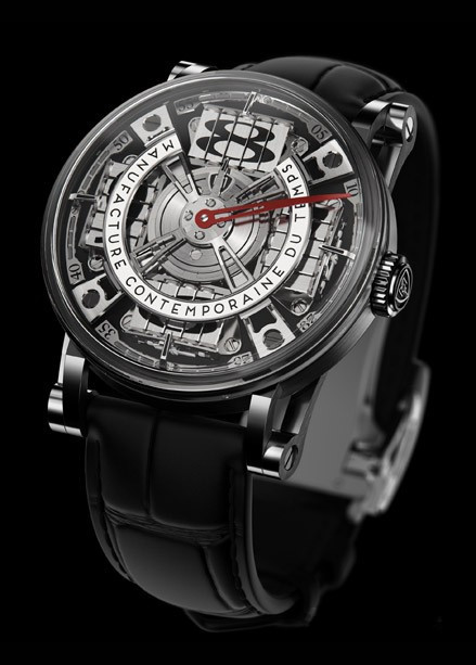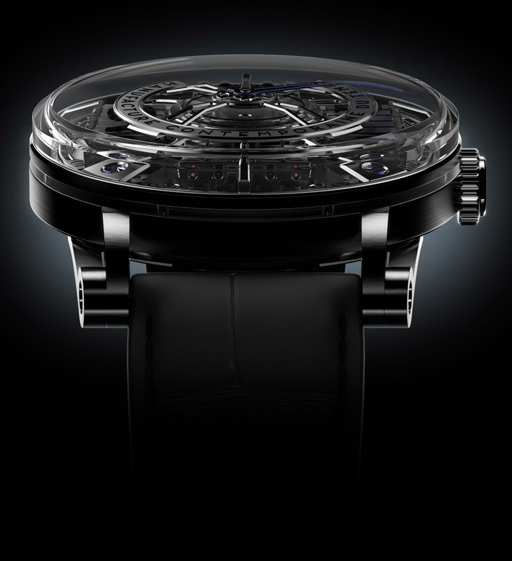 В двух новых ограниченных сериях S210 переосмысленное оформление циферблата придает особую выразительность уникальной структуре механизма MCT-S2.0: блестящая поверхность антрацитового цвета или цвета шампанского подчеркивает высокотехнологичный характер часов. Современная архитектура в очередной раз стала источником вдохновения для специалистов MCT. Две модели, выпущенные ограниченными сериями из 25 экземпляров, пополнили коллекцию Sequential Two. Механизм MCT-S2.0 с автоматическим подзаводом был спроектирован, разработан и собран в стенах компании, в расположенных в Невшателе мастерских. Индикация часов осуществляется с помощью увеличенного размера цифр, которые отображаются четырьмя модулями с пятью трехгранными призмами. Текущий час указывается в окошке выполненного в форме буквы «С» дугообразного индикатора, расположенного в центре циферблата, который одновременно скрывает под собой остальные модули. В момент смены часа индикатор моментально поворачивается на 90° против часовой стрелки для отображения следующего часа. Минутные метки расположены по периметру циферблата. Крупная центральная стрелка гарантирует оптимальную считываемость показаний. Модель Sequential с нестандартным фирменным отображением времени оснащена круглым корпусом диаметром 46,4 мм, изготовленным из титана Grade 5 с DLC-покрытием. Использование сапфирового стекла с антибликовым покрытием в сочетании с выполненным также из сапфирового стекла ободком корпусного кольца позволяет свету проникать внутрь корпуса, что подчеркивает совершенство сложных функций и высокое качество микромеханической обработки.