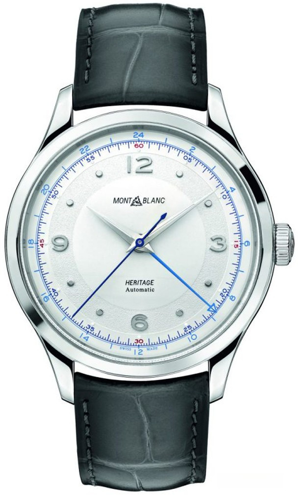 Часы Montblanc Heritage Automatic GMT представлены в корпусе из нержавеющей стали размером 40 мм и водонепроницаемостью 50 м. Внутри корпуса установлен автоматический механизм, обладающий запасом хода 38 часов. На серебристом циферблате отображаются часы, минуты, секунды, время второго часового пояса. Часы комплектуются ремешком из кожи аллигатора с вставкой из нержавеющей стали.