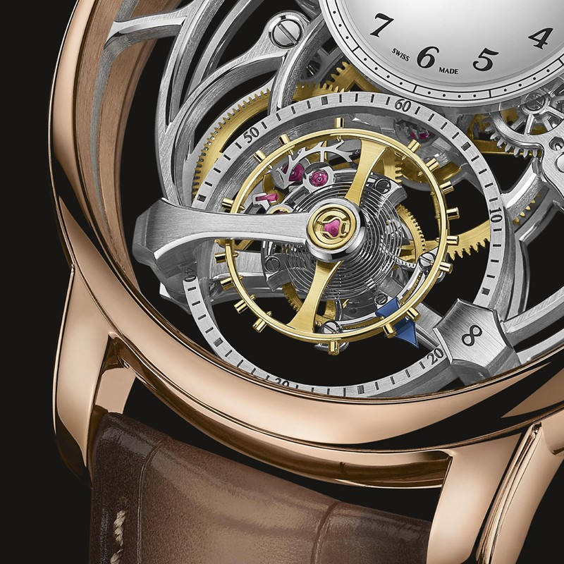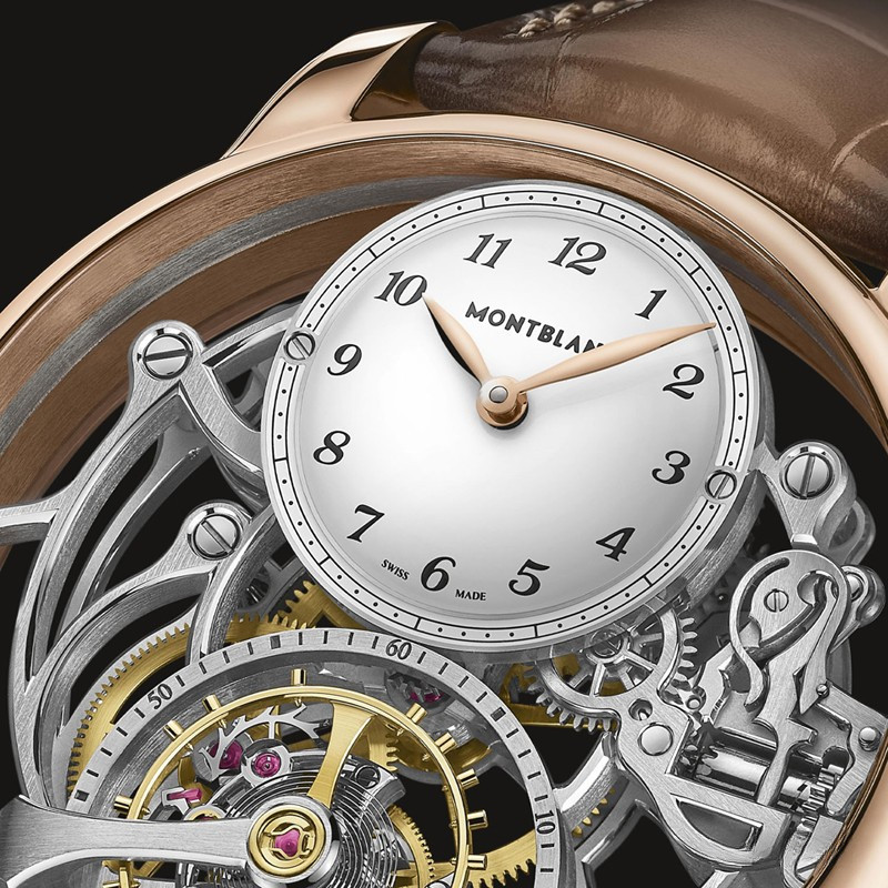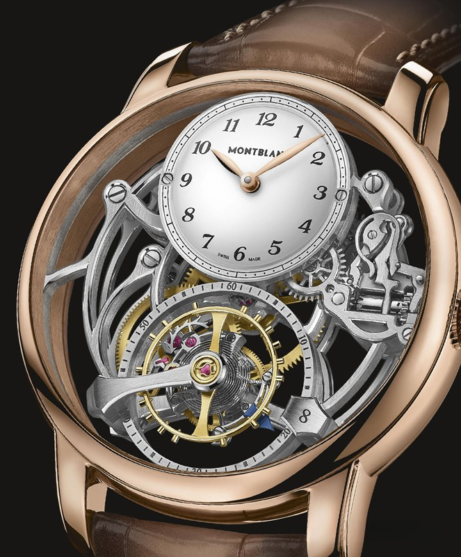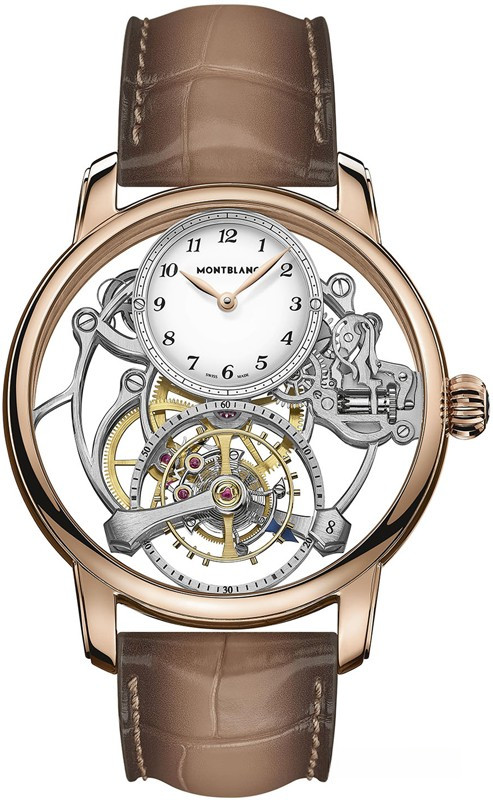 Часы Montblanc Star Legacy Exo Tourbillon Skeleton LE8 представлены в корпусе размером 44.8 х 15.1 мм из розового золота 18к с водонепроницаемостью до 30 метров. Внутри корпуса установлен механизм с ручным заводом, Калибр MB M18.69, обладающий запасом хода 50 часов. На серебристом циферблате отображаются часы, минуты, секунды, турбийон. Часы поставляются на ремешке из кожи аллигатора с вставкой из розового золота 18к. Серия ограничена 8 шт.