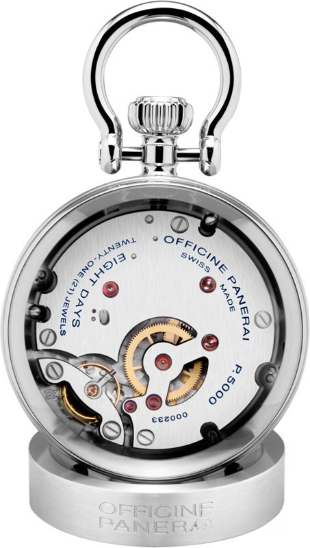 Мануфактура Panerai представила настольные часы PAM 00651 со встроенным 8-дневным часовым механизмом в стальном корпусе. Вид спереди раскрывает неповторимый черный циферблат от Panerai, с часовой и минутной стрелками. Внутри установлен механизм с ручным заводом.