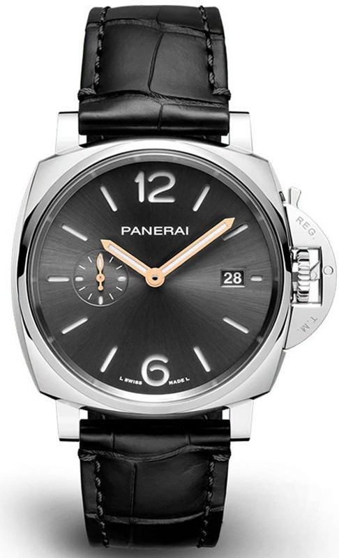 Часы Luminor Due стали самым тонким и универсальным творением Panerai. Их элегантный, гармоничный дизайн с ясными, лаконичными формами является результатом сложной технической переработки исторического дизайна Luminor, превратившей икону среди спортивных часов класса люкс в новую классику, подходящую к любому запястью и для любой ситуации, но при этом сохранившую узнаваемую самобытность Panerai. Корпус Luminor Due насчитывает 42 мм в диаметре и всего лишь 10,5 мм в толщину. Он изготовлен целиком из нержавеющей стали. Заводная головка защищена классическим мостовым устройством с рычагом, запатентованным Panerai в 1956 году. Корпус и ободок имеют полированную отделку. Серый циферблат выдержан в классическом дизайне Panerai с большими светящимися индексами и цифрами. Малая секундная стрелка находится в положении «9 часов», а окошко даты – в положении «3 часа». Ремешок из кожи аллигатора. Застежка изготовлена из нержавеющей стали.