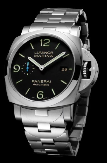 Часы Officine Panerai Luminor Marina 44 mm представлены в корпусе из нержавеющей стали размером 44 х 15.65 мм, водонепроницаемость до 300 метров. Внутри корпуса установлен автоматический механизм, Калибр P.9010 с запасом хода 3 дня. На черном циферблате отображаются часы, минуты, секунды, дата. Часы комплектуются браслетом из нержавеющей стали.
