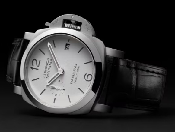 Часы Officine Panerai Luminor Quaranta представлены в корпусе размером 40 мм из нержавеющей стали водонепроницаемостью 100 метров. Внутри корпуса установлен автоматический механизм, Калибр P.900, обладающий запасом хода 3 дня. На белом циферблате отображаются часы, минуты, секунды, дата. Часы поставляются на ремешке из кожи аллигатора с застежкой из нержавеющей стали.