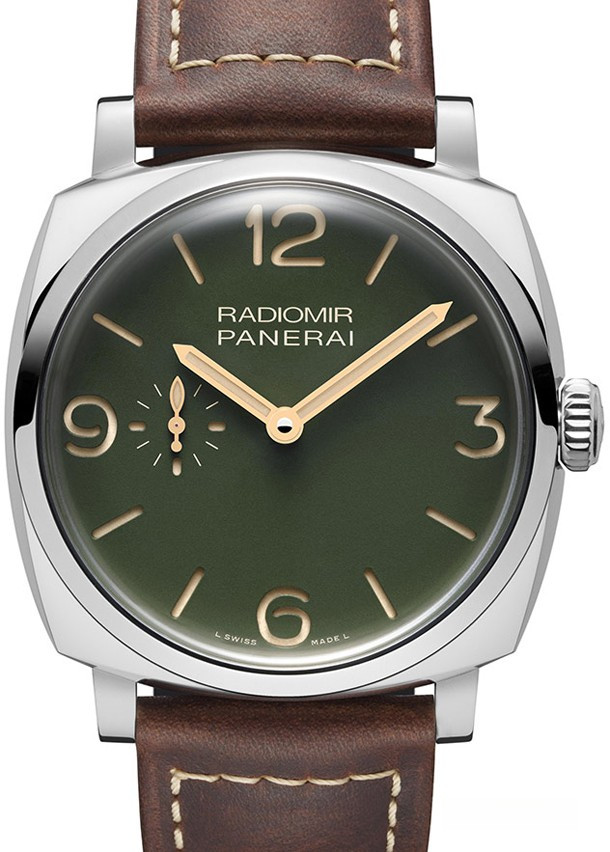 Часы Officine Panerai Radiomir Military Green Editions представлены в корпусе из нержавеющей стали диаметром 45 мм и водонепроницаемостью 100 метров. Внутри корпуса установлен автоматический механизм, Калибр P.4000, обладающий запасом хода 3 дня. На зеленом циферблате отображаются часы, минуты, секунды. Часы комплектуются кожаным ремешком с вставкой из нержавеющей стали.