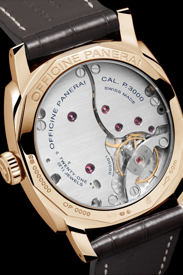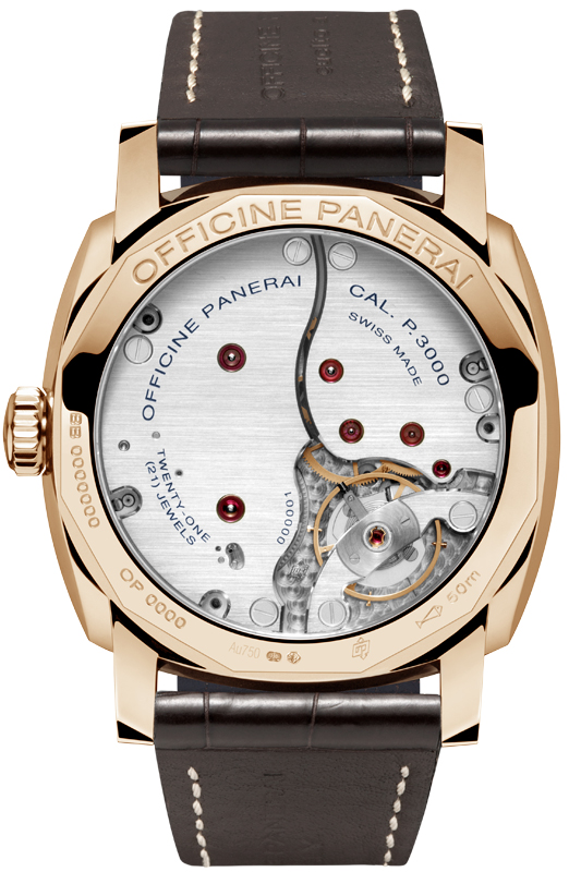 Часы Officine Panerai Radiomir 1940 3 Days Oro Rosso PAM 00515 выпущены в корпусе из розового золота 18к. Размер составляет 47 мм, водонепроницаемость 50 м. Внутри корпуса установлен механизм с ручным заводом, Калибр P.3000, обеспечивающий запас хода 3 дня. На коричневом циферблате отображаются часы, минуты, секунды, дата. Часы комплектуются коричневым кожаным ремешком с вставкой из розового золота, 18к. Часы и минуты отображаются при помощи центральных стрелок, малая секундная стрелка находится на 9-ти часах, апертура даты - на 3-х. Часы выпущены ограниченной серией 500 шт.
