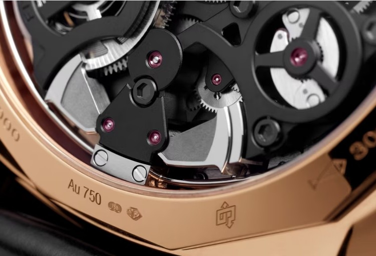 Часы Officine Panerai Radiomir Minute Repeater Tourbillon GMT представлены в корпусе размером 49 мм из розового золота 18к водонепроницаемостью 30 метров. Внутри корпуса установлен механизм с ручным заводом, Калибр P.2005/MR, обладающий запасом хода 4 дня. На черном циферблате отображаются часы, минуты, секунды, дата. Часы поставляются на ремешке из кожи аллигатора с золотой застежкой.