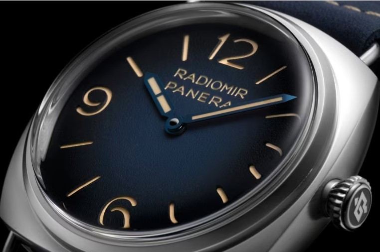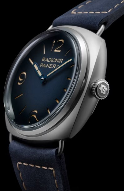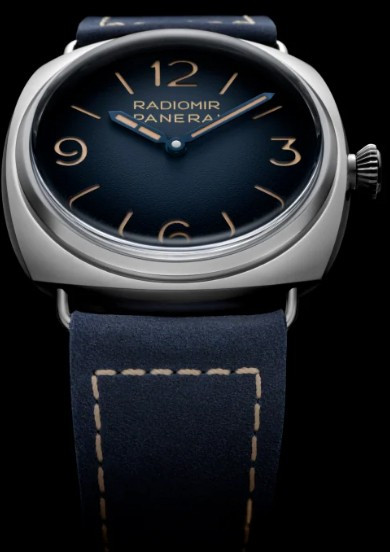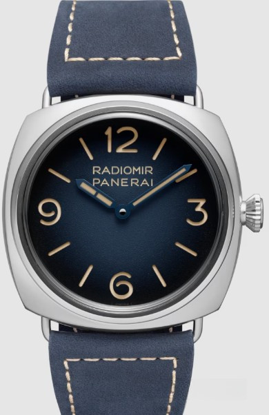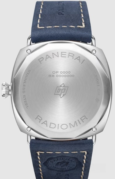 Часы Officine Panerai Radiomir Officine представлены в корпусе размером 45 мм из нержавеющей стали водонепроницаемостью 100 метров. Внутри корпуса установлен механизм с ручным заводом, Калибр P.6000, обладающий запасом хода 3 дня. На синем циферблате отображаются часы, минуты, секунды. Часы поставляются на кожаном ремешке с застежкой из нержавеющей стали.