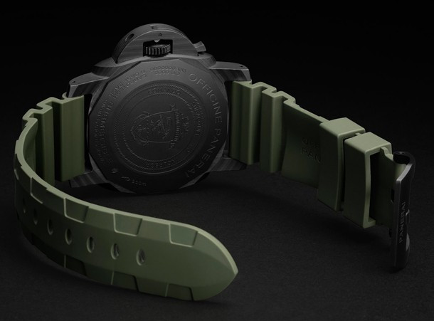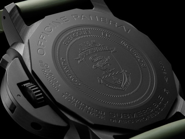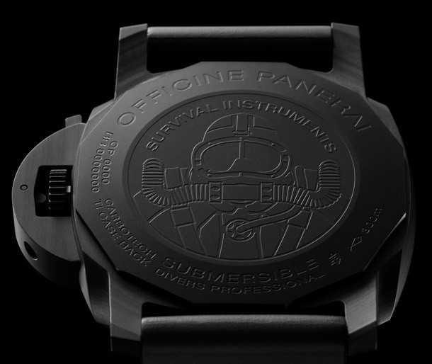 Часы Officine Panerai Submersible Marina Militare Carbotech представлены в корпусе из карбона и титана размером 47 мм и водонепроницаемостью 300 м. Внутри корпуса установлен автоматический механизм, Калибр P.9010, обладающий запасом хода 72 часа. На черном циферблате отображаются часы, минуты, секунды и дата. Часы комплектуются каучуковым ремешком с титановой вставкой. Серия ограничена - 33 штуки.