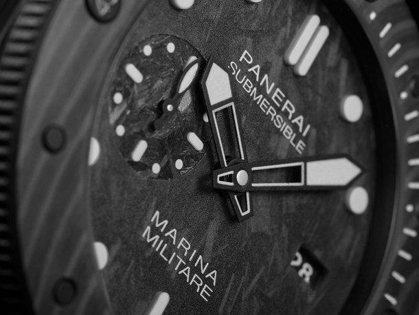 Часы Officine Panerai Submersible Marina Militare Carbotech представлены в корпусе из карбона и титана размером 47 мм и водонепроницаемостью 300 м. Внутри корпуса установлен автоматический механизм, Калибр P.9010, обладающий запасом хода 72 часа. На черном циферблате отображаются часы, минуты, секунды и дата. Часы комплектуются каучуковым ремешком с титановой вставкой.