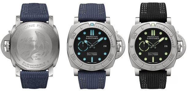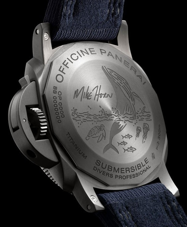 Часы Officine Panerai Luminor Submersible Mike Horn Edition 47 mm представлены в корпусе из титана размером 47 мм и водонепроницаемостью 300 м, безель часов вращается. Внутри корпуса установлен автоматический механизм, Калибр Panerai P.9010, обладающий запасом хода 72 часа. На черном циферблате отображаются часы, минуты, секунды и дата. Часы комплектуются текстильным ремешком с титановой вставкой. Серия ограничена - 19 штук.