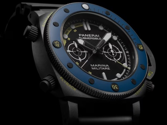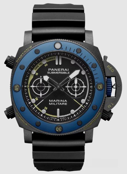 Часы Officine Panerai Submersible Forze Speciali представлены в корпусе размером 47 мм из титана с покрытием DLC водонепроницаемостью 300 метров. Внутри корпуса установлен автоматический механизм, Калибр P.9100/R, обладающий запасом хода 3 дня. На черном циферблате отображаются часы, минуты, секунды, хронограф.Часы поставляются на каучуковом ремешке с титановой застежкой.