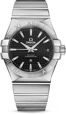 Необычайно эффектный дизайн часов OMEGA Constellation прошел проверку временем. Его характерной особенностью стали знаменитые скобки по бокам часового корпуса и впечатляющие циферблаты. Эта модель имеет черный циферблат с перевернутым узором «Clous de Paris», окошком указателя даты в положении «3 часа» и устойчивым к царапинам сапфировым стеклом. Безель с выгравированными римскими цифрами закреплен на корпусе диаметром 35 мм из нержавеющей стали. Часы дополняет браслет из нержавеющей стали. В этой модели используется коаксиальный часовой механизм, калибр 2500, который виден сквозь сапфировое стекло задней крышки корпуса.
