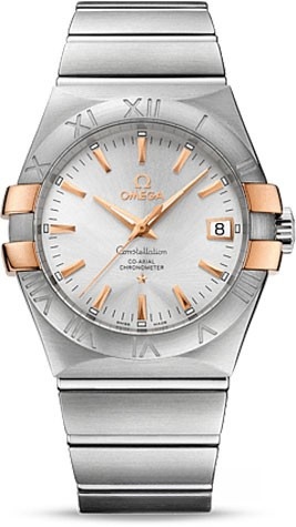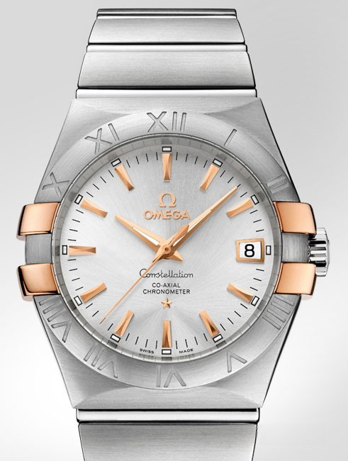 Необычайно эффектный дизайн часов OMEGA Constellation прошел проверку временем. Его характерной особенностью стали знаменитые скобки по бокам часового корпуса и впечатляющие циферблаты. Модель Constellation 2009 имеет серебристый циферблат с окошком указателя даты в положении «3 часа» и устойчивым к царапинам сапфировым стеклом. Безель с выгравированными римскими цифрами и скобками из 18-каратного розового золота закреплен на корпусе диаметром 35 мм из нержавеющей стали. Часы дополняетбраслет из нержавеющей стали. Основу этих часов составляет коаксиальный часовой механизм, калибр 2500, который виден сквозь прозрачную заднюю крышку корпуса.