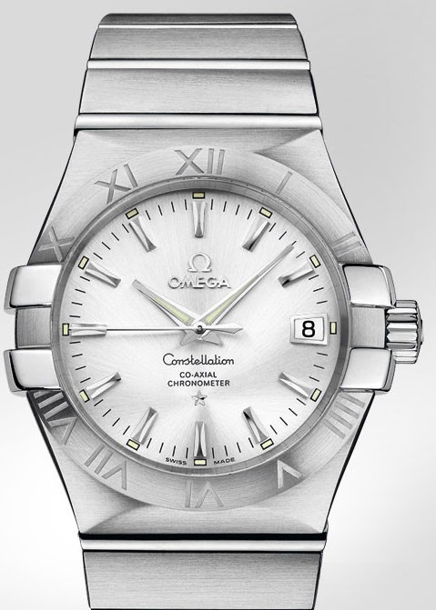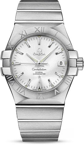 Необычайно эффектный дизайн часов OMEGA Constellation прошел проверку временем. Его характерной особенностью стали знаменитые скобки по бокам часового корпуса и впечатляющие циферблаты. Эта модель имеет серебристый циферблат с окошком указателя даты в положении «3 часа» и устойчивым к царапинам сапфировым стеклом. Безель с выгравированными римскими цифрами закреплен на корпусе диаметром 35 мм из нержавеющей стали. Часы дополняет браслет из нержавеющей стали. В этой модели используется коаксиальный часовой механизм, калибр 2500, который виден сквозь сапфировое стекло задней крышки корпуса.