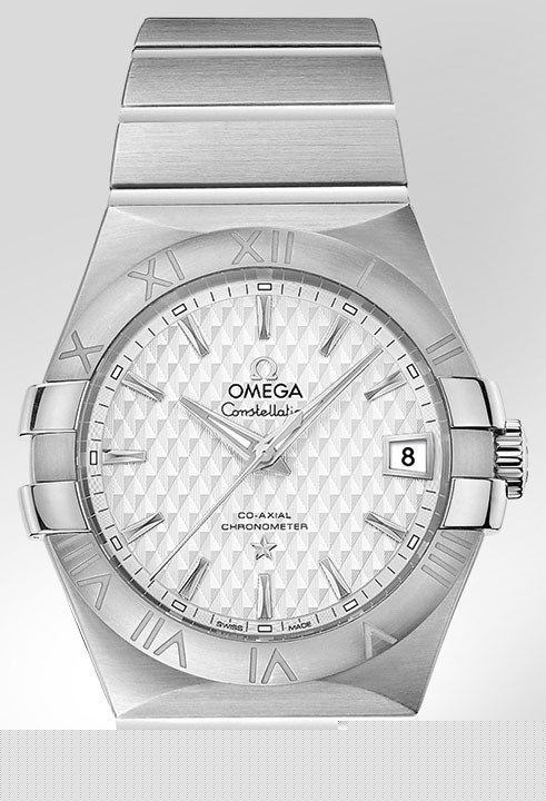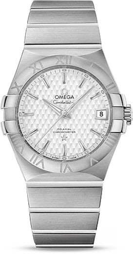 Необычайно эффектный дизайн часов OMEGA Constellation прошел проверку временем. Его характерной особенностью стали знаменитые скобки по бокам часового корпуса и уникальный циферблат. Данная модель имеет серебристый циферблат с рельефным узором в виде ромбов и окошком указателя даты в положении «3 часа». Ее безель из нержавеющей стали с выгравированными римскими цифрами закреплен на корпусе диаметром 35 мм из нержавеющей стали, который дополнен стальным браслетом. В этой модели используется коаксиальный часовой механизм, калибр 2500, который виден сквозь сапфировое стекло задней крышки корпуса.