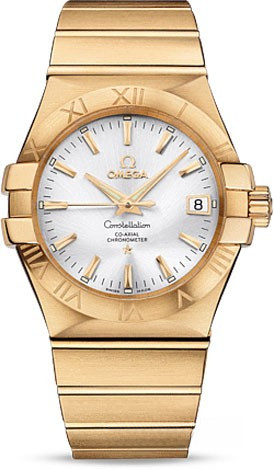 Необычайно эффектный дизайн часов OMEGA Constellation прошел проверку временем. Его характерной особенностью стали знаменитые скобки по бокам часового корпуса и впечатляющие циферблаты. Эта модель имеет серебристый циферблат с окошком указателя даты в положении «3 часа» и устойчивым к царапинам сапфировым стеклом. Безель с выгравированными римскими цифрами закреплен на корпусе диаметром 35 мм из 18-каратного желтого золота. Часы дополняет браслет из 18-каратного желтого золота. В этой модели используется коаксиальный часовой механизм, калибр 2500, который виден сквозь сапфировое стекло задней крышки корпуса.