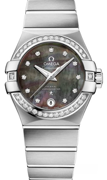 Названная в честь небесных светил коллекция Constellation с 1952 года является символом роскоши. При создании этой серии мастера OMEGA обратились не только к темам неба, но и морских глубин: циферблаты часов изготовлены из перламутра с острова Таити. Циферблат модели диаметром 27 мм украшен 11 бриллиантовыми часовыми метками. К уникальным отличиям модели также относится окошко указателя даты в положении "6 часов". Корпус и браслет изготовлены из нержавеющей стали. Ставшие характерной особенностью коллекции Constellation знаменитые скобки расположены на украшенном бриллиантами безеле. В модели используется коаксиальный часовой механизм OMEGA, калибр 8520, который виден сквозь выполненную из сапфирового стекла заднюю крышку корпуса.