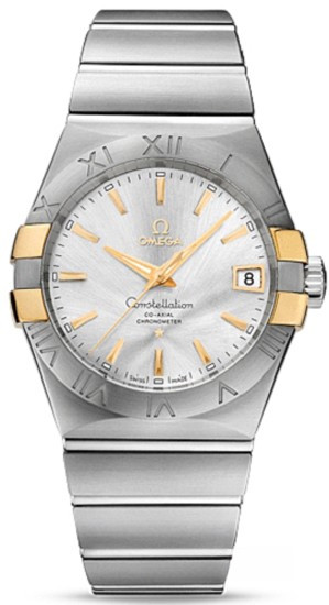 Необычайно эффектный дизайн часов OMEGA Constellation прошел проверку временем. Его характерной особенностью стали знаменитые скобки по бокам часового корпуса и уникальный циферблат. Данная модель имеет серебристый циферблат и окошком указателя даты в положении «3 часа». Ее безель из нержавеющей стали с выгравированными римскими цифрами и вставками из желтого золота 18к закреплен на корпусе диаметром 38 мм из нержавеющей стали, который дополнен браслетом из нержавеющей стали. В этой модели используется коаксиальный часовой механизм OMEGA, калибр 8500, который виден сквозь сапфировое стекло задней крышки корпуса.