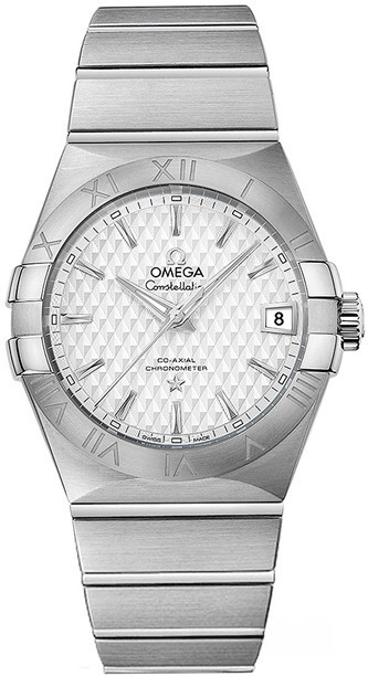 Необычайно эффектный дизайн часов OMEGA Constellation прошел проверку временем. Его характерной особенностью стали знаменитые скобки по бокам часового корпуса и уникальный циферблат. Данная модель имеет белый гильошированный циферблат с окошком указателя даты в положении «3 часа». Ее безель из нержавеющей стали закреплен на корпусе диаметром 38 мм из нержавеющей стали, который дополнен браслетом из нержавеющей стали. В этой модели используется коаксиальный часовой механизм OMEGA, калибр 8500, который виден сквозь сапфировое стекло задней крышки корпуса.
