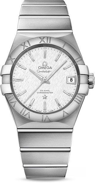 Необычайно эффектный дизайн часов OMEGA Constellation прошел проверку временем. Его характерной особенностью стали знаменитые скобки по бокам часового корпуса и уникальный циферблат. Данная модель имеет серебристый циферблат с окошком указателя даты в положении «3 часа». Ее безель из нержавеющей стали закреплен на корпусе диаметром 38 мм из нержавеющей стали, который дополнен браслетом из нержавеющей стали. В этой модели используется коаксиальный часовой механизм OMEGA, калибр 8500, который виден сквозь сапфировое стекло задней крышки корпуса.