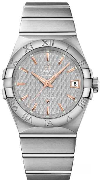 Необычайно эффектный дизайн часов OMEGA Constellation прошел проверку временем. Его характерной особенностью стали знаменитые скобки по бокам часового корпуса и уникальный циферблат. Данная модель имеет серый циферблат с окошком указателя даты в положении «3 часа». Ее безель из нержавеющей стали закреплен на корпусе диаметром 38 мм из нержавеющей стали, который дополнен браслетом из нержавеющей стали. В этой модели используется коаксиальный часовой механизм OMEGA, калибр 8500, который виден сквозь сапфировое стекло задней крышки корпуса.