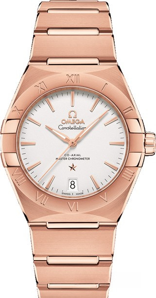 Характерными элементами выразительного и всегда актуального дизайна часов OMEGA Constellation являются узнаваемые полукруглые скосы вверху и внизу корпуса, боковые "скобки" и интегрированный браслет. Модель из 18-каратного золота Sedna™ имеет корпус диаметром 36 мм, безель с выгравированными римскими цифрами, опаловый серебристо-белый циферблат с окошком указателя даты в положении "6 часов". Стрелки, логотип OMEGA, звезда Constellation и индексы также выполнены из 18-каратного золота Sedna™. Часы оснащены калибром OMEGA Co-Axial Master Chronometer 8801, который можно рассмотреть сквозь устойчивое к царапинам выпуклое сапфировое стекло задней крышки корпуса.