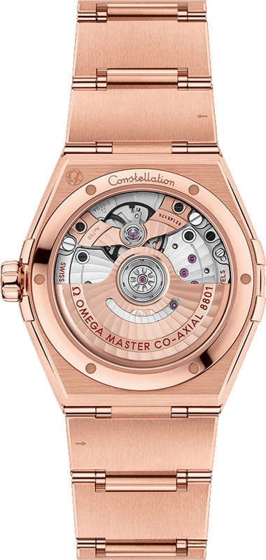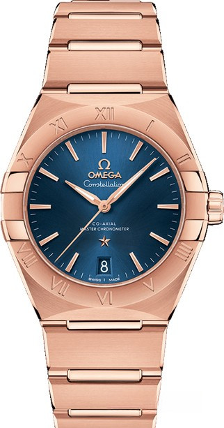 Характерными элементами выразительного и всегда актуального дизайна часов OMEGA Constellation являются узнаваемые полукруглые скосы вверху и внизу корпуса, боковые "скобки" и интегрированный браслет. Модель из 18-каратного золота Sedna™ имеет корпус диаметром 36 мм, безель с выгравированными римскими цифрами, синий циферблат с радиальным сатинированием и окошком указателя даты в положении "6 часов". Стрелки, логотип OMEGA, звезда Constellation и индексы также выполнены из 18-каратного золота Sedna™. Часы оснащены калибром OMEGA Co-Axial Master Chronometer 8801, который можно рассмотреть сквозь устойчивое к царапинам выпуклое сапфировое стекло задней крышки корпуса.