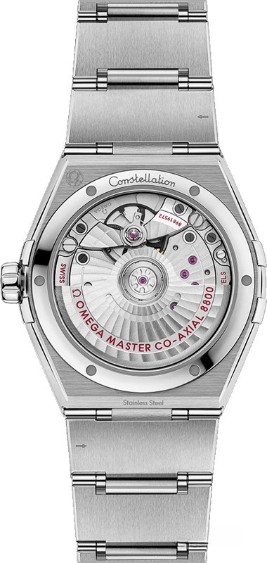 Характерными элементами выразительного и всегда актуального дизайна часов OMEGA Constellation являются узнаваемые полукруглые скосы вверху и внизу корпуса, боковые "скобки" и интегрированный браслет. Модель из нержавеющей стали имеет корпус диаметром 36 мм, безель с выгравированными римскими цифрами, циферблат цвета серого родия с рельефным узором и шелковистой текстурой и окошком указателя даты в положении "6 часов". Стрелки, логотип OMEGA, звезда Constellation и индексы также выполнены из 18-каратного золота Sedna™. Часы оснащены калибром OMEGA Co-Axial Master Chronometer 8800, который можно рассмотреть сквозь устойчивое к царапинам выпуклое сапфировое стекло задней крышки корпуса.