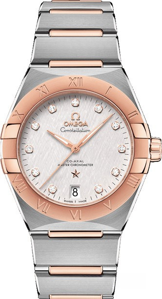 Характерными элементами выразительного и всегда актуального дизайна часов OMEGA Constellation являются узнаваемые полукруглые скосы вверху и внизу корпуса, боковые "скобки" и интегрированный браслет. Модель из нержавеющей стали и 18-каратного золота Sedna™ имеет корпус диаметром 36 мм, безель с выгравированными римскими цифрами, серебристо-кремовый циферблат с рельефным узором и шелковистой текстурой, с бриллиантовыми индексами и окошком указателя даты в положении "6 часов". Стрелки, логотип OMEGA, звезда Constellation и оправа бриллиантов выполнены из 18-каратного золота Sedna™. Часы оснащены калибром OMEGA Co-Axial Master Chronometer 8800, который можно рассмотреть сквозь устойчивое к царапинам выпуклое сапфировое стекло задней крышки корпуса.