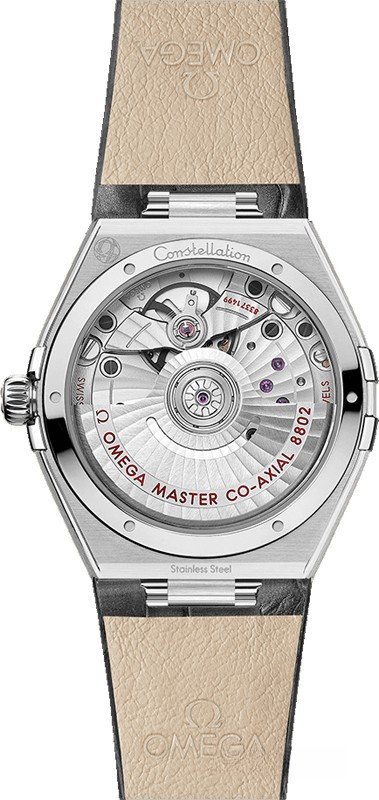 Часы Omega Constellation Co-Axial Master Chronometer Small Seconds 34 mm представлены в корпусе из нержавеющей стали размером 34 мм водонепроницаемостью 50 метров. Внутри корпуса установлен автоматический механизм, Калибр 8802, обладающий запасом хода 55 часов. На серебристом циферблате отображаются часы, минуты, секунды, дата. Часы поставляются на ремешке из кожи аллигатора с вставкой из нержавеющей стали.